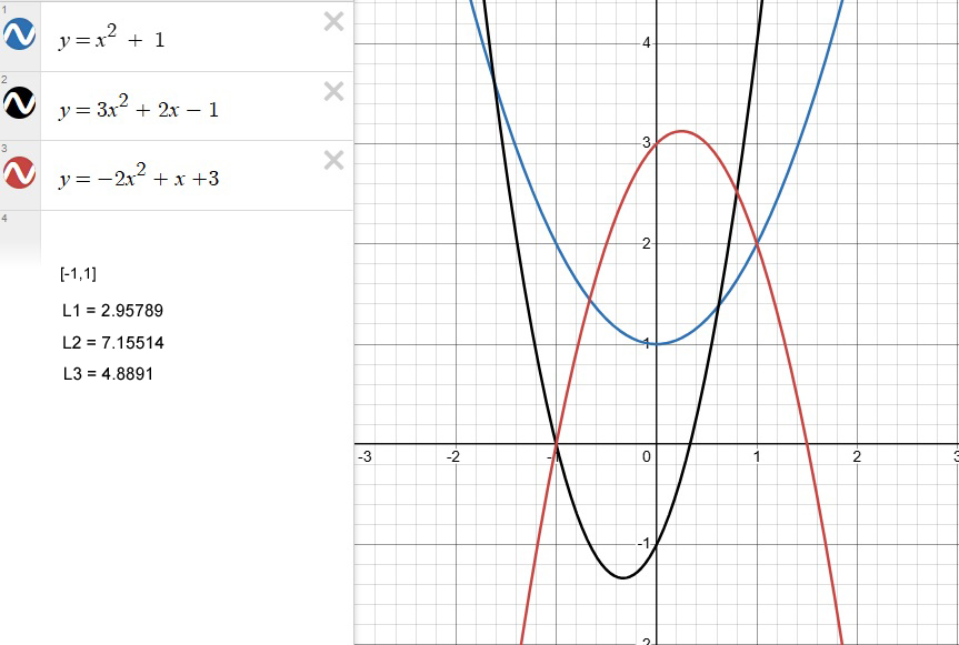 Here, the example functions within [-1,1] (100 sub-intervals) are: